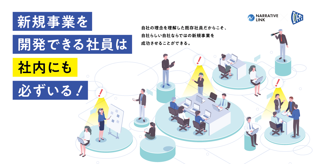 人・組織・プロセスを専門とする株式会社ナラティブリンクと、経営戦略を専門とするI’chiba’n株式会社のコラボレーションにより、自社の理念を理解した社内人材を活用した、外部人材に依存しない新規事業の立上げを支援します。