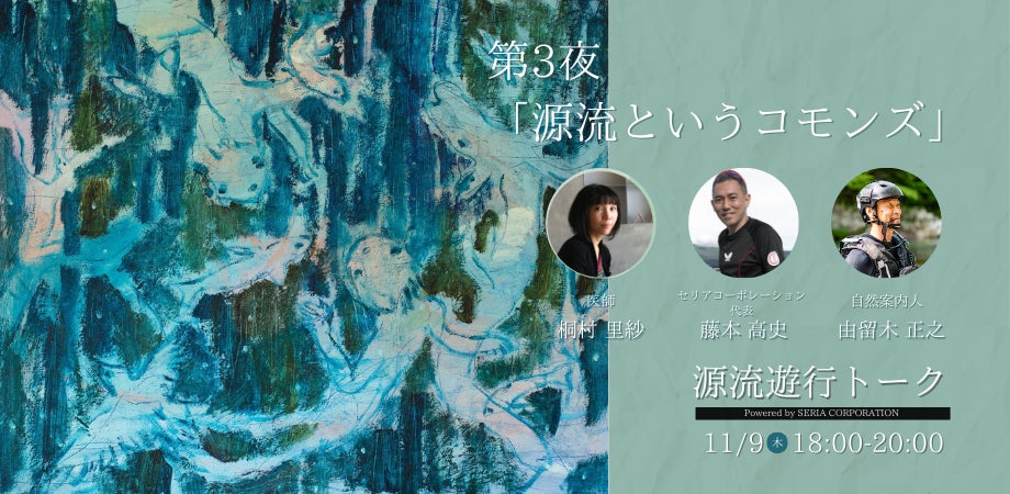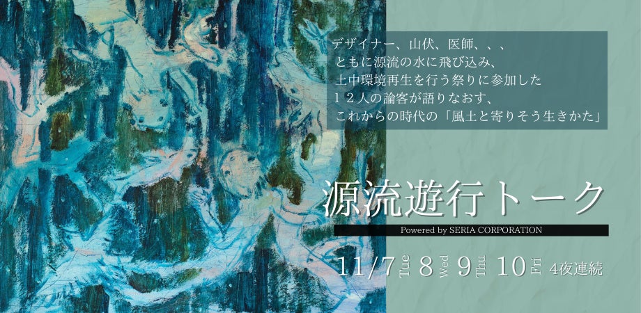 本トークイベントには「源流遊行祭2023」に実際に参加した、プラネタリーヘルスを提唱する医師の桐村里紗さんをはじめ、瞑想実践者、デザイナー、山伏といったさまざまな分野の専門家をゲストに迎え「風土と寄りそう生きかた」をディスカッションします。長良川カンパニーはこのイベントや取り組みを通して、日本の源流域(中山間地域)におけるひとと自然の共再生のモデルづくりを目指します。