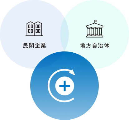 C+Gが自治体と民間企業のHUBとなり、更には内閣府・総務省・経済産業省の指導から新規プロジェクトを立ち上げることにより、地方自治体の「プロジェクト成功」に寄与していきます。