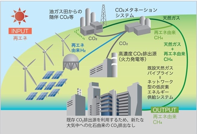 ※1:CO2をリサイクルし、「e-メタン」として生まれ変わったクリーンなエネルギーを一般家庭に供給する未来を実現する技術