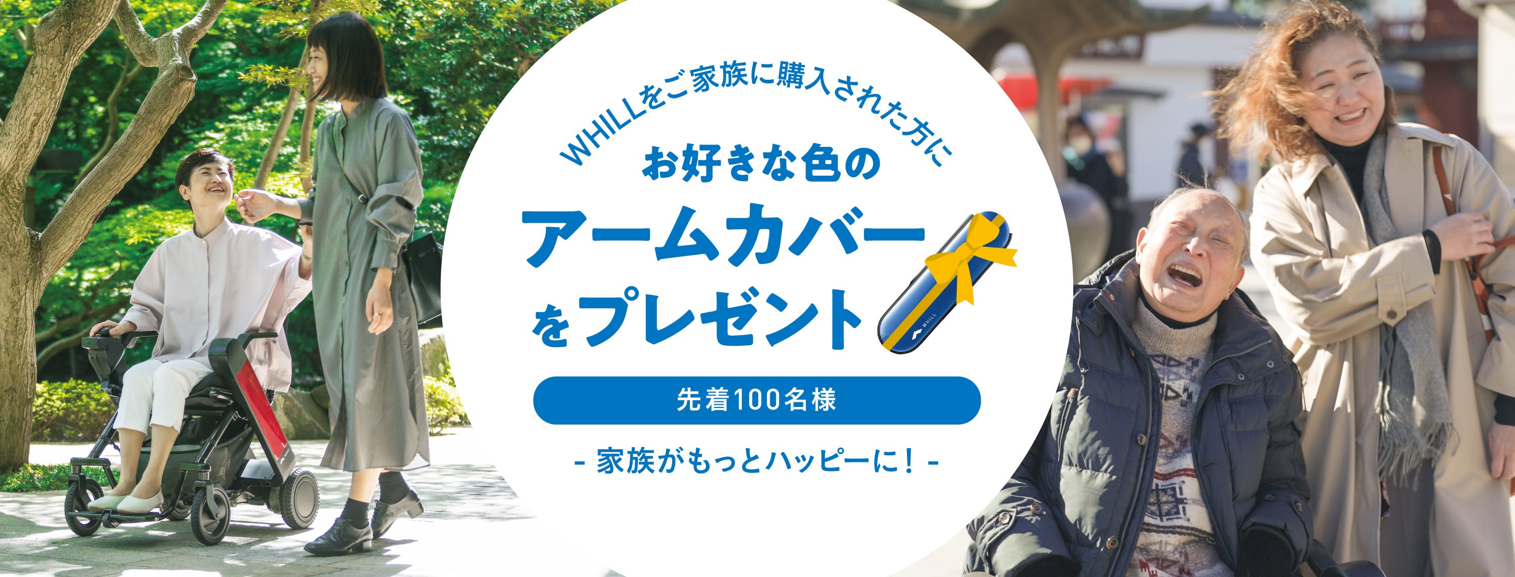 WHILL社では、5月13日(金)~6月30日(木)まで、ご家族へのギフトとしてWHILLを購入されるお客様に対し、お好きな色のアームカバー/カラープレートを追加でプレゼントする新たな取り組みを全国70社(700店舗以上)の自動車ディーラーにて実施します。家族で運転免許の有無にかかわらず安心した生活できることについて考える機会を創出するとともに、引き続き快適かつ安心な移動をサポートしてまいります。