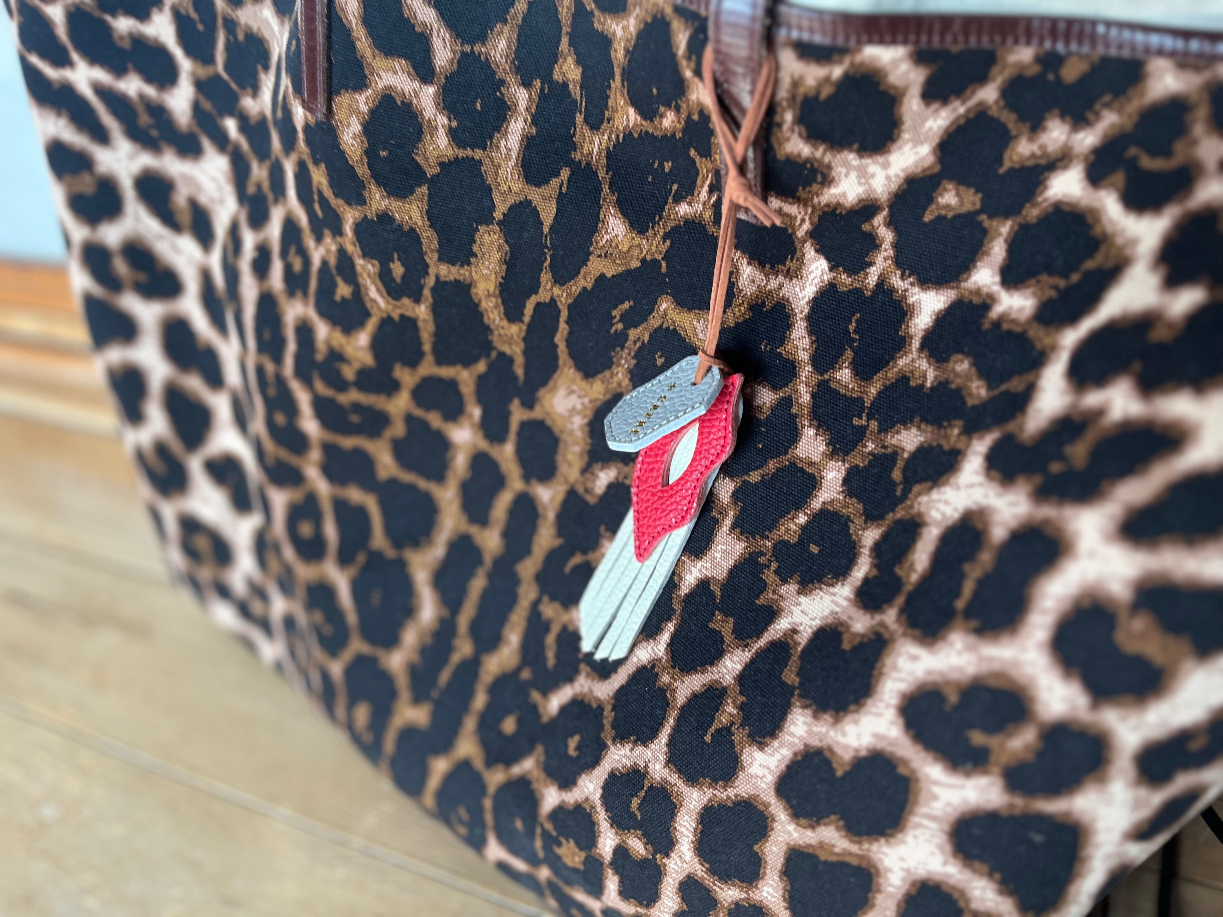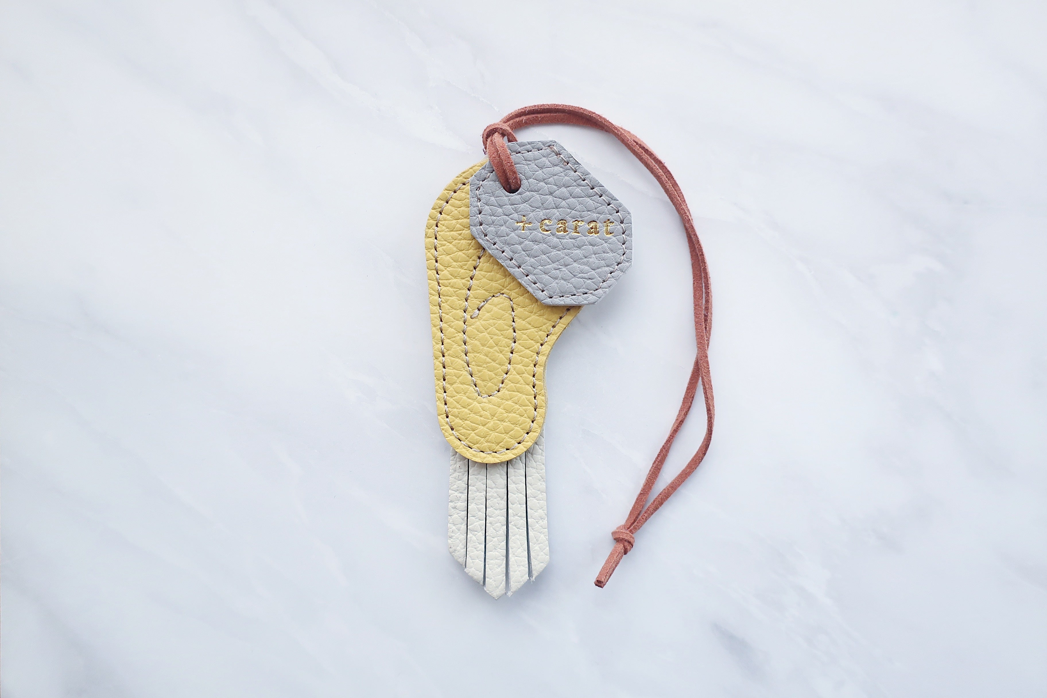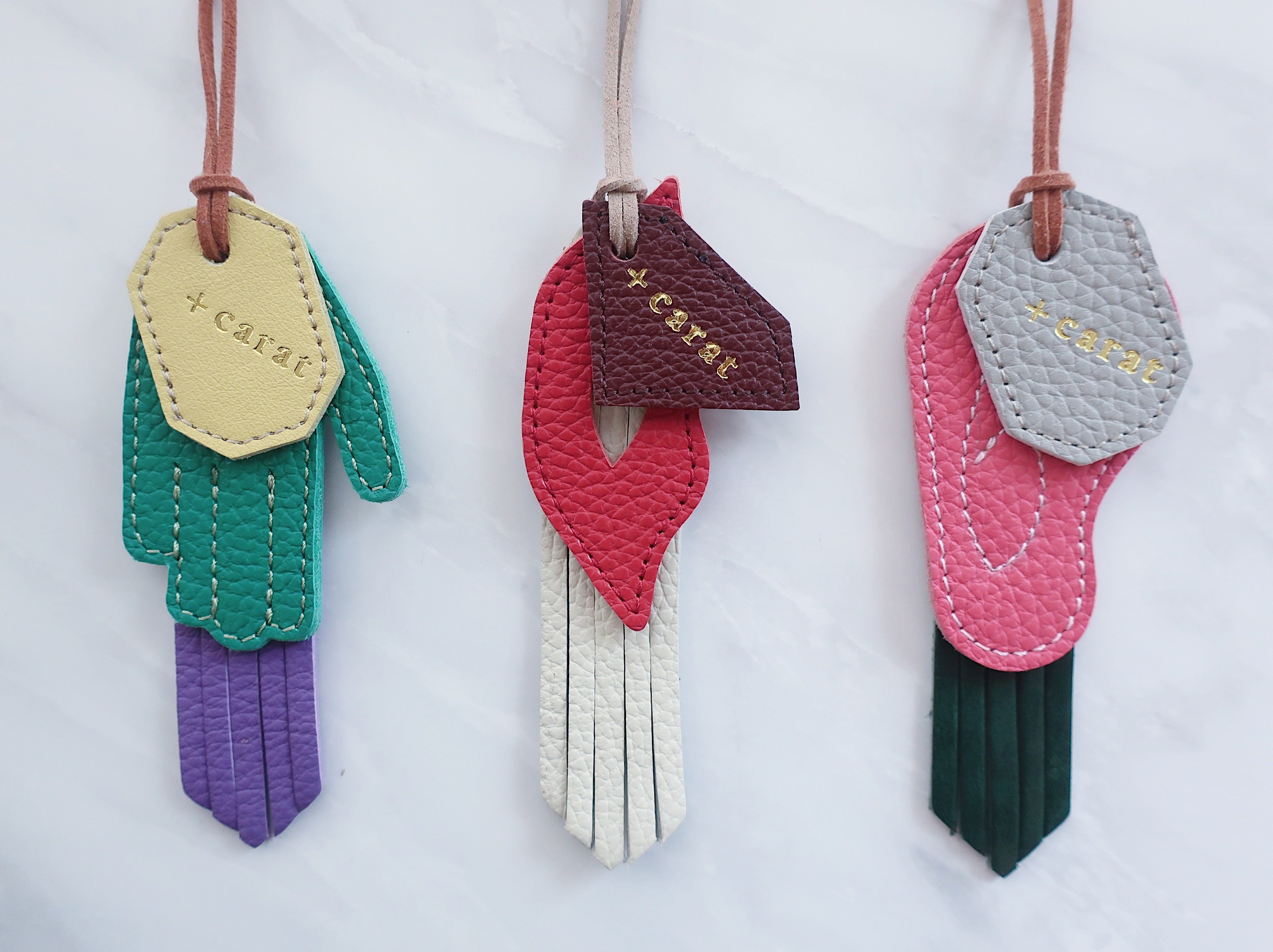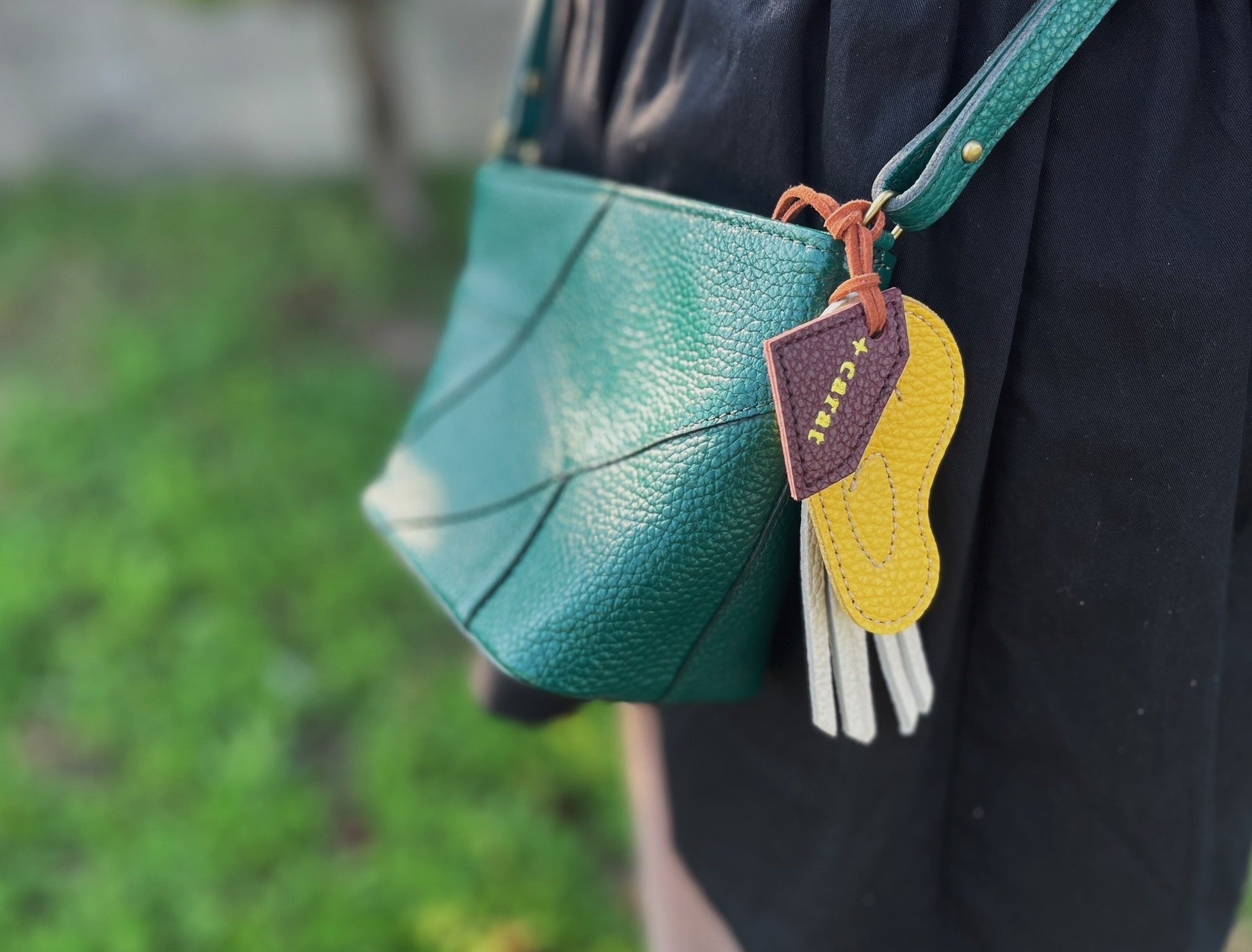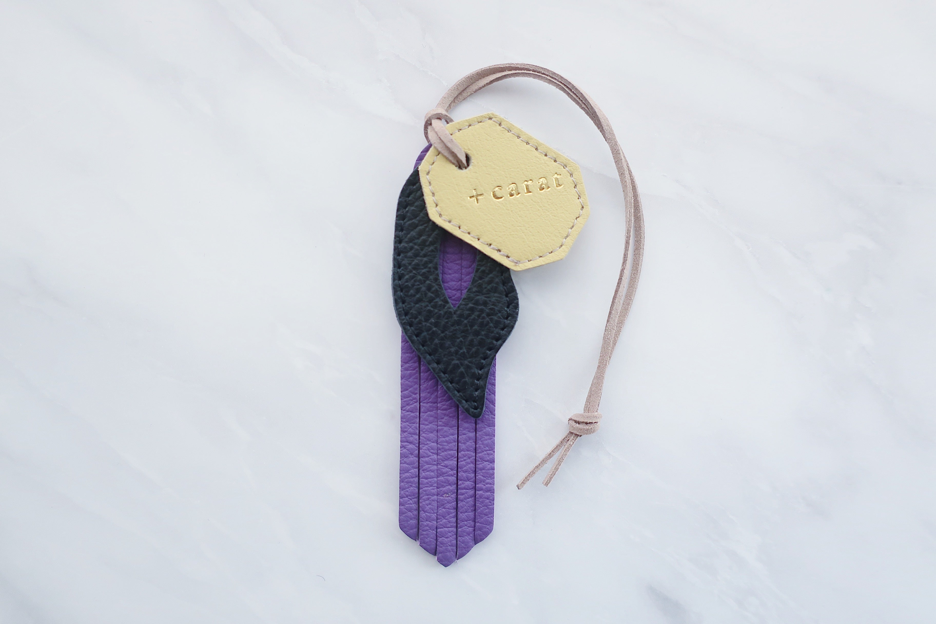 ブランドコンセプトである“宝石をまとう”を形にしたバッグチャームです。この商品は、革製品の製造過程で捨てられる小さな残革や使われなくなった端材を救いたいという思いから生まれました。