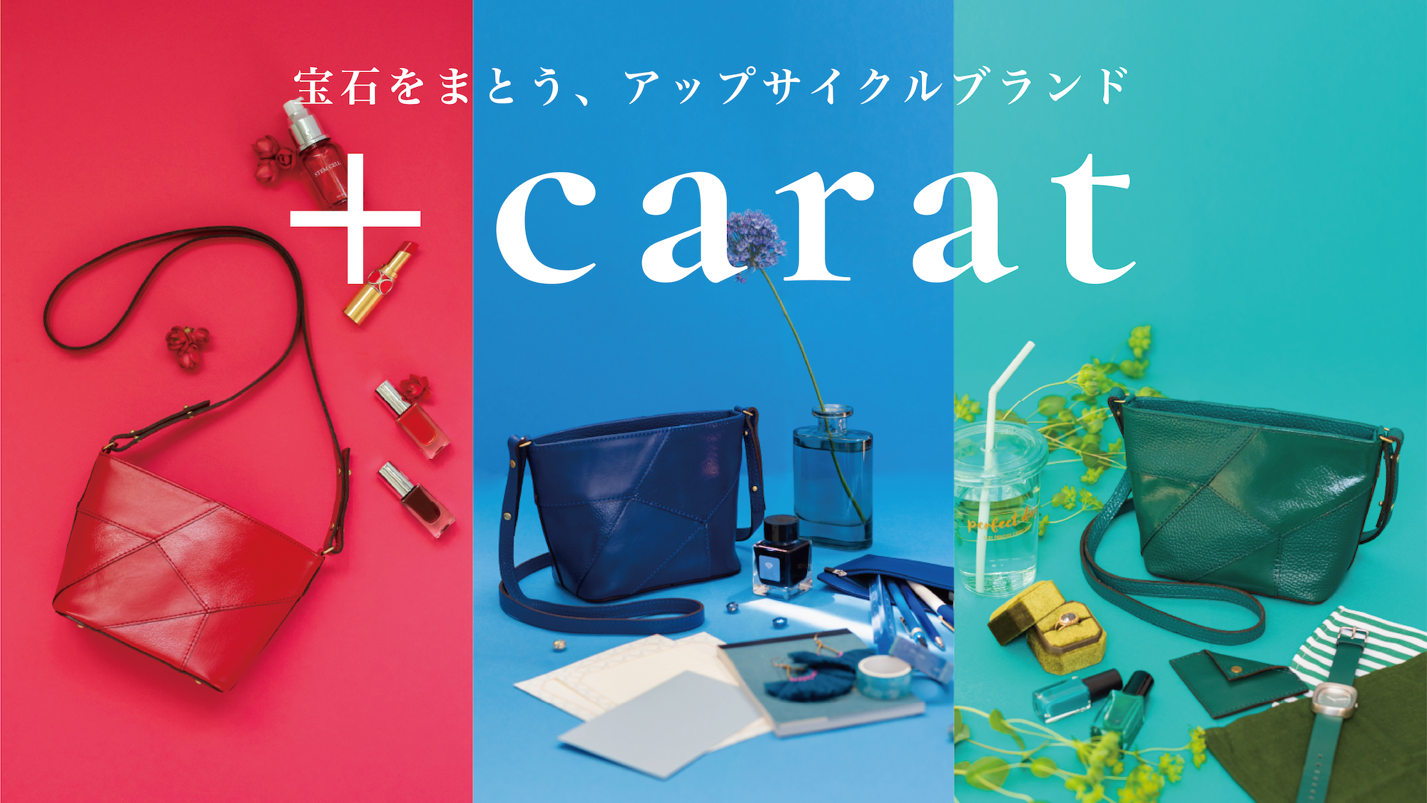 +carat(プラスカラット)は、”宝石をまとう”をコンセプトに端材を用いたアイテムを展開する香川発のアップサイクルブランドです。ブランド名は「端材にも女性にも輝きをプラスする」ことに由来しています。