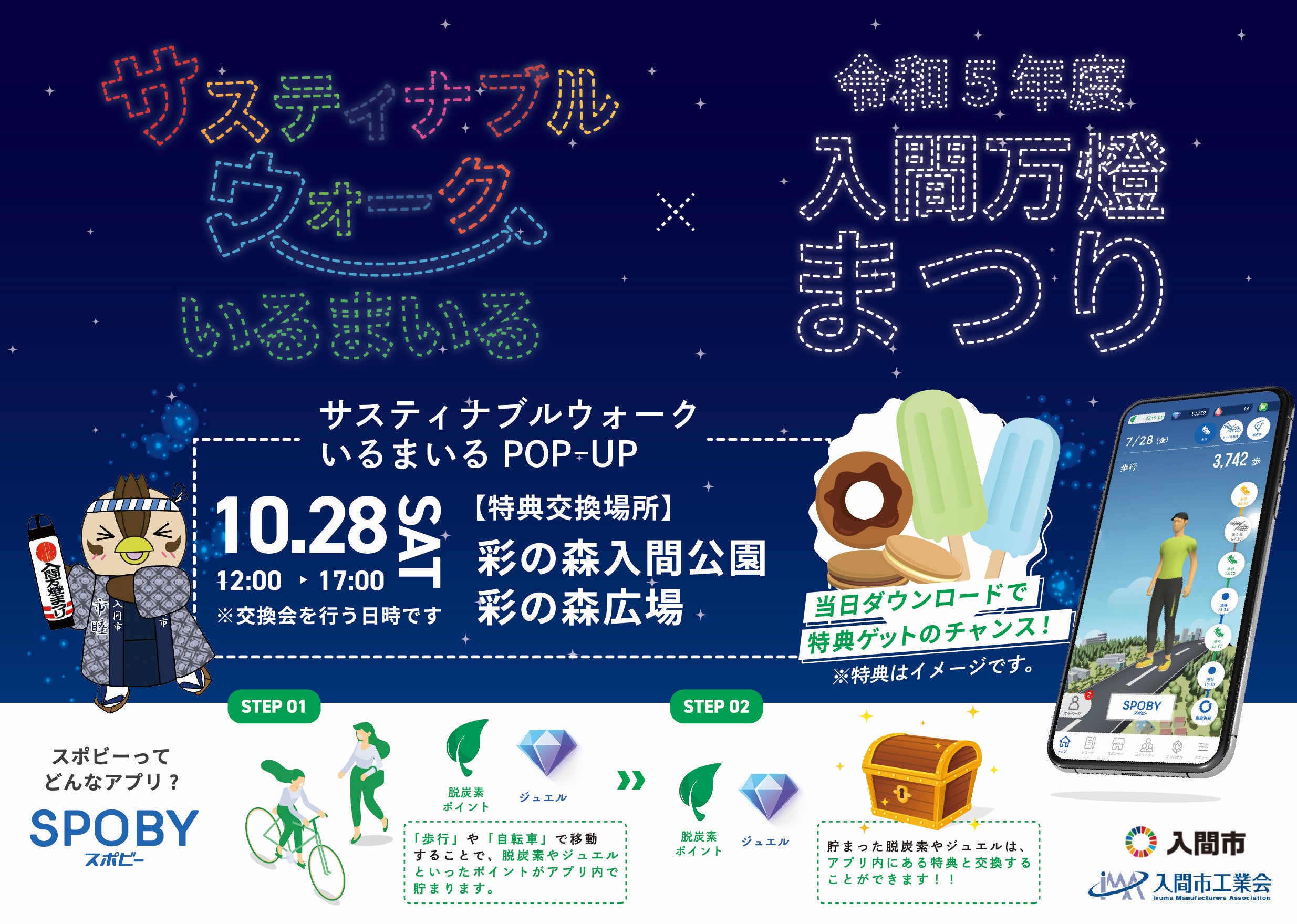 2023年10月28日(土)には、「入間万燈まつり」にて特典プレゼント会を開催します。入間市が提供するスポーツブランドシューズやスタイリングライフ・ホールディングスが提供する雑貨など様々な特典との交換が可能で、当日ダウンロードでもらえる特典も多数あり、多くの方が楽しめるイベントです。