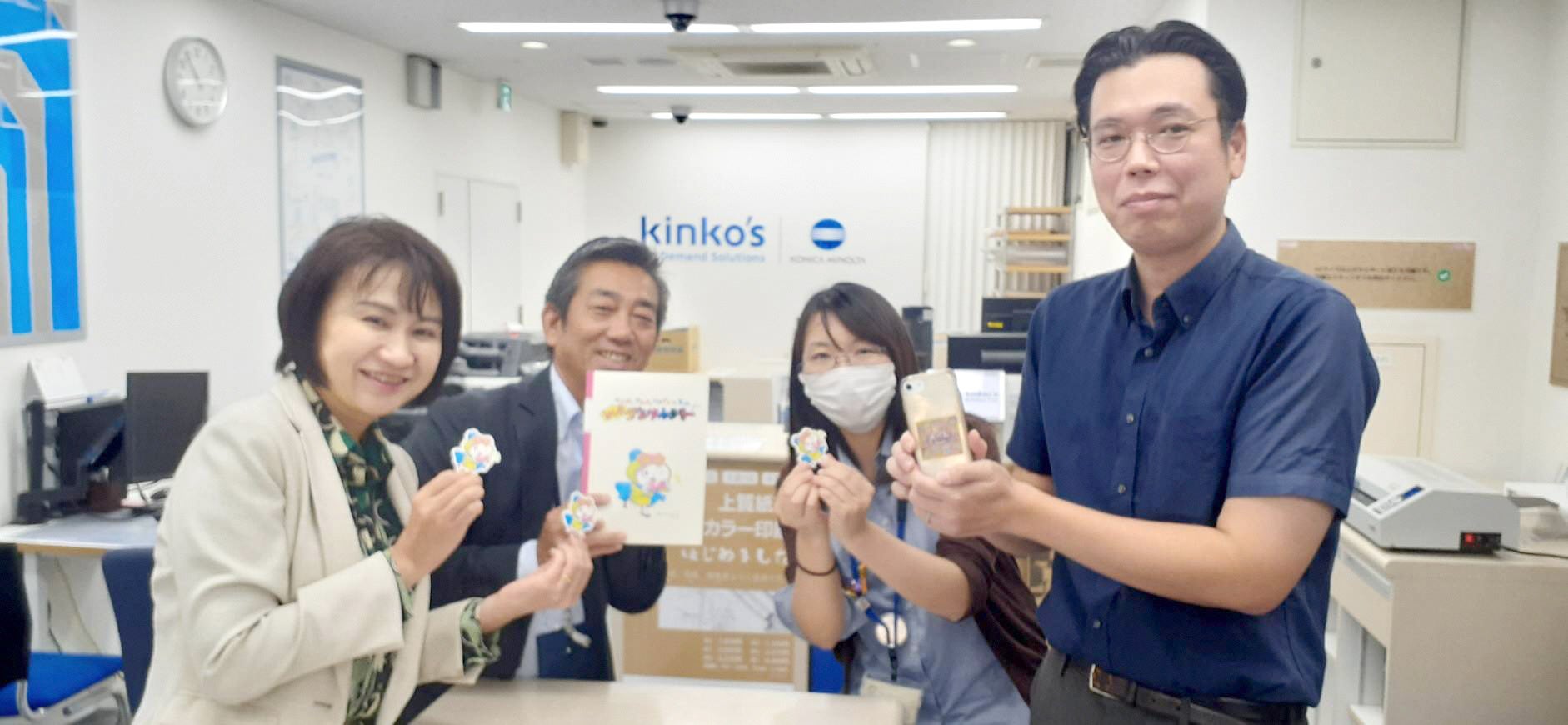 当社は、「地域のパートナーとなり、地域社会の発展を目指す」をマテリアリティ(重要課題)のひとつに掲げ、キンコーズ店舗を通じた地域共創活動を行っています。 豊島区では、2020年に11月1日を「としま文化の日」として条例で定め、アートとカルチャーをテーマとしたまちづくりを行っています。2022年には区制90周年を迎え、誰もが主役になれる日常にアート・カルチャーが溢れるまちを目指し尽力しています。この活動に共感し、豊島区民や訪れる人々にアピールする活動に同区内にあるキンコーズ・池袋東口店および池袋西口店での告知活動、そして関連イベントで配布する一部ノベルティの製作および物品提供による協力を行います。(画像:高際みゆき豊島区長(写真左)の来店模様)