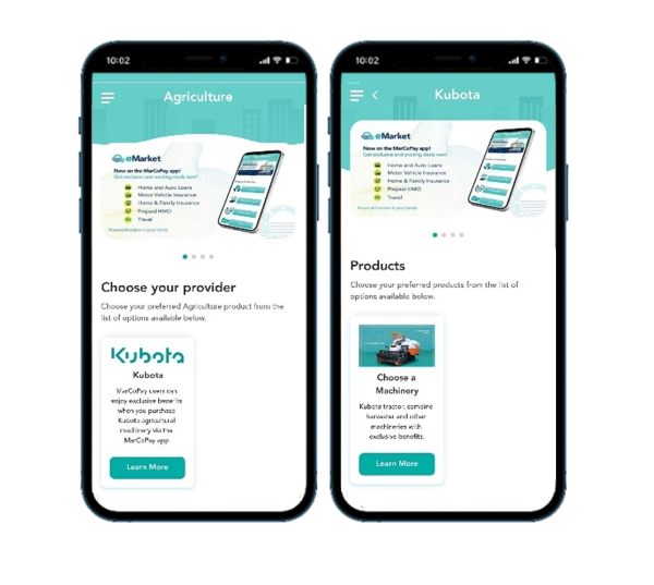 「MarCoPay」アプリで購入を検討し、クボタの農機を購入した船員に、GPS通信料の特別割引などの特典を提供します。