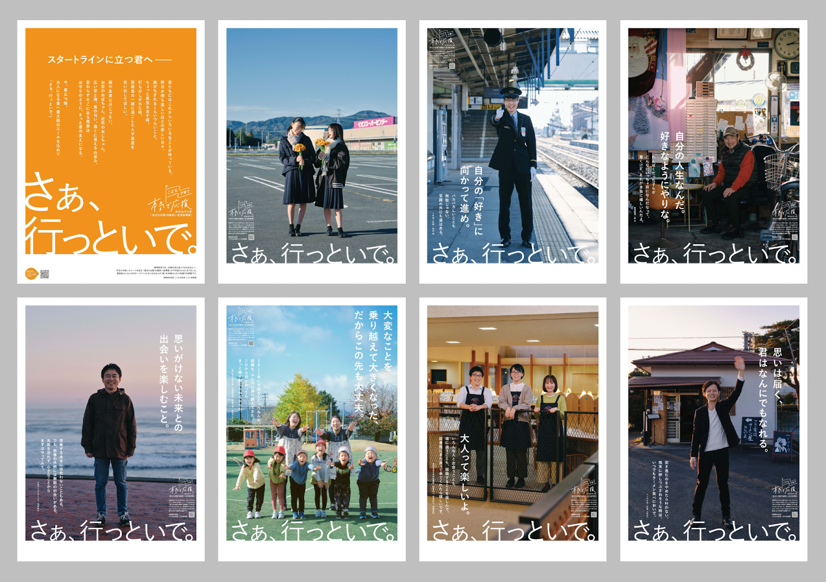 そして、夢に向かって巣立っていくこども達の背中をポンと押したい。そんな気持ちを『さぁ、いっといで』という言葉に込めて、応援ポスターを制作しました。