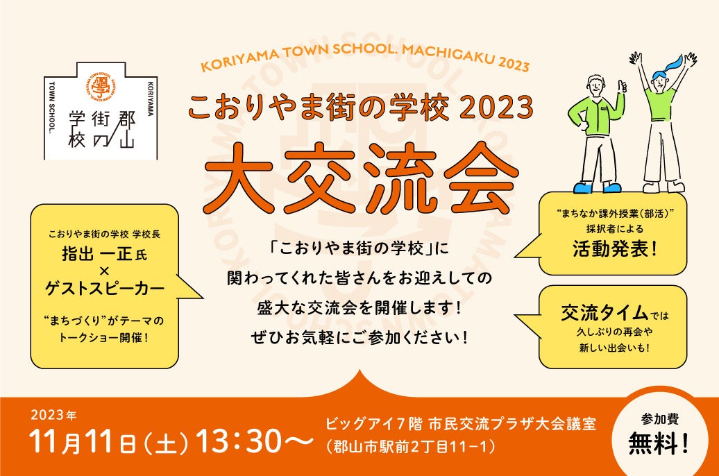 これらの取り組みが「まちがくのつづき」になるように、久しぶりの再会や新しい出会いを生み出す場として、「こおりやま街の学校 2023 大交流会」を開催します。