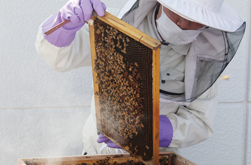 大阪の中心部で、医誠会ハニーを採蜜し都市養蜂をより身近に感じられるよう、巣箱紹介、管理栄養士からの説明、採蜜体験、試食会を行います。