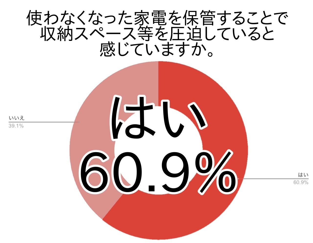 アンケートでは次に、使わなくなった家電を保管することで収納スペースを圧迫していると感じるかを尋ねました。