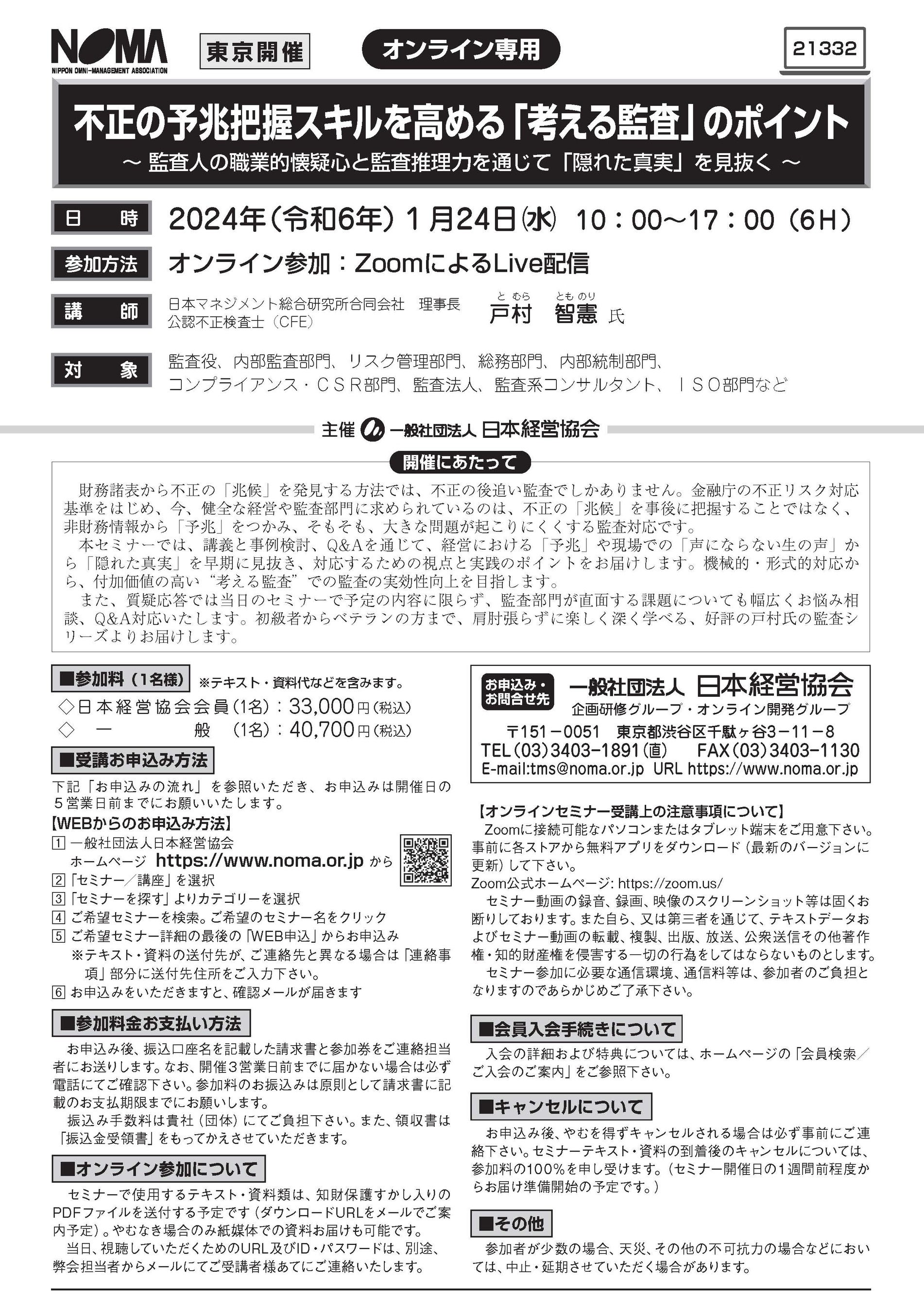 ・セミナー詳細・お申込み(PDFチラシ版): https://www.jmri.co.jp/2024.Jan.24.FuseiYocho.Tomura.pdf