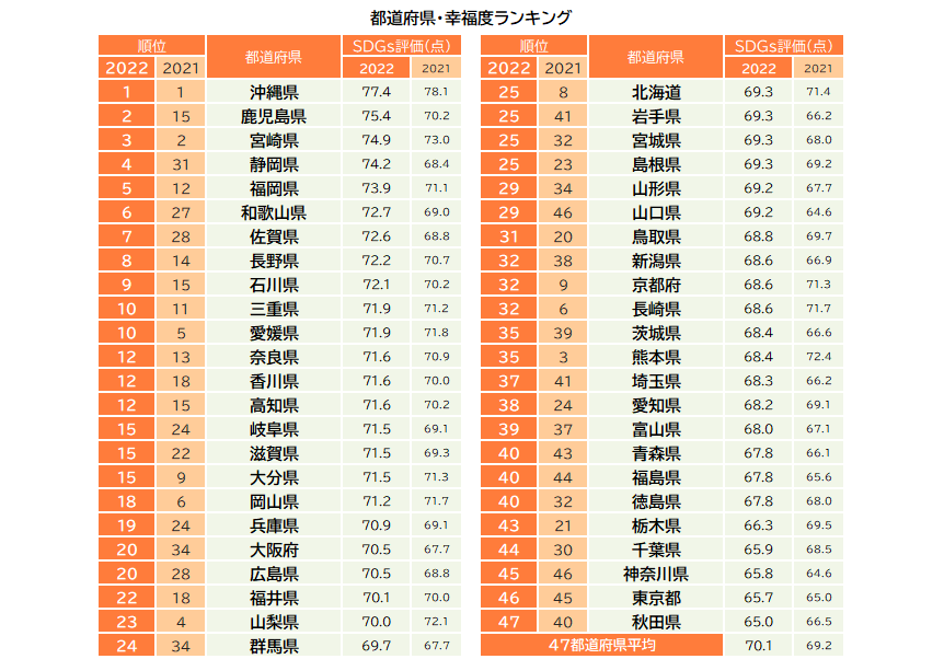 その結果、住民が最も「幸せである」と感じているのは沖縄県で2年連続1位となりました。