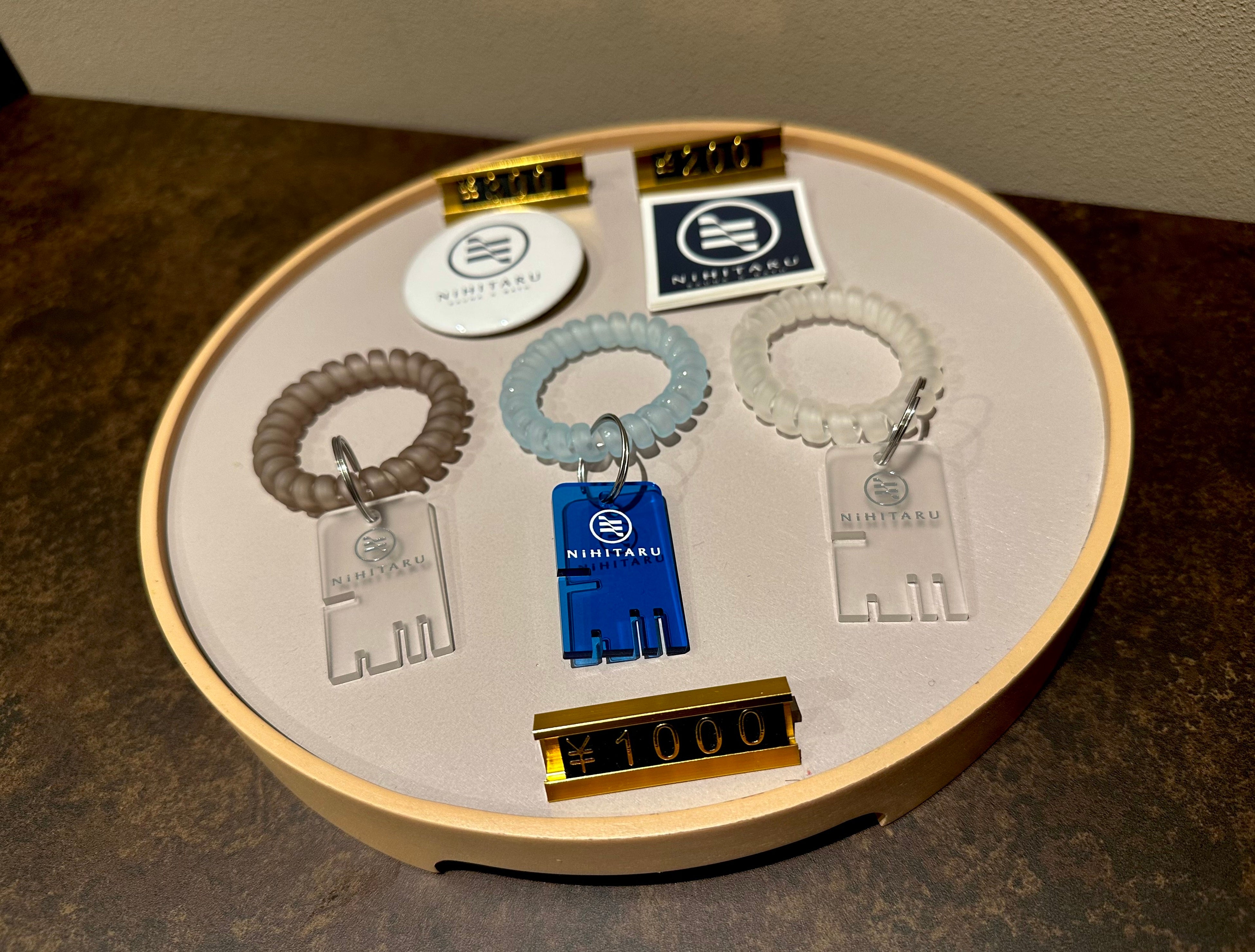 店舗内受付カウンターにて、各種オリジナルグッズを販売しております。(全て税込表記)