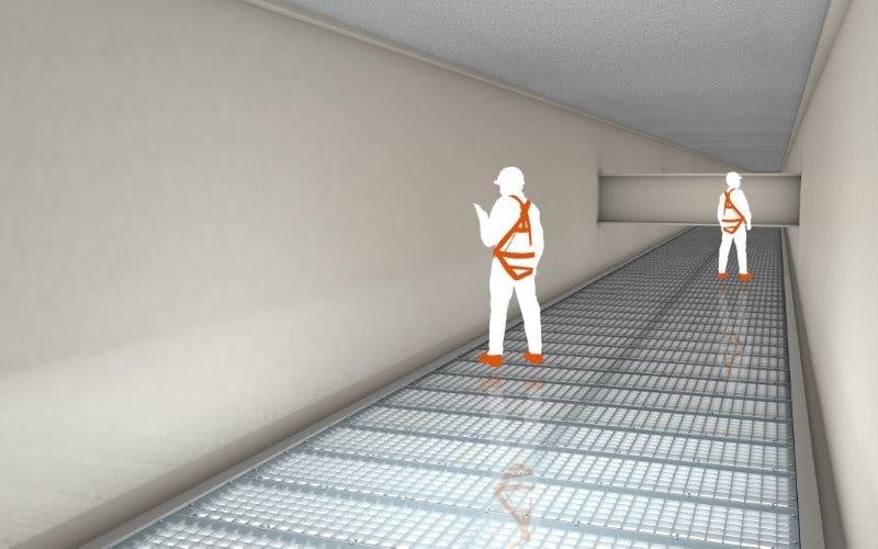 サン・ステラスを設置した橋梁内部の照度を計測すると、晴天時、点検空間は300lx、最大で500lx程度の照度が確保されました。これは厚生労働省が規定する「付随的な事務作業(文字を読み込む必要のない作業)」の作業照度に相当することから、晴天時にはライトで照らす必要はありません。