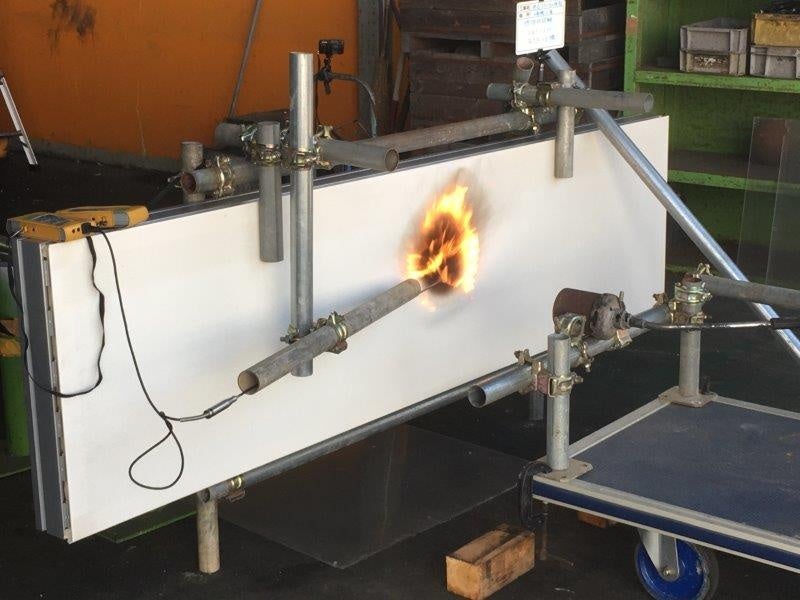 火災発生の際、足場内への燃えぬけ、足場下への破損物の落下がないかを確認しました。