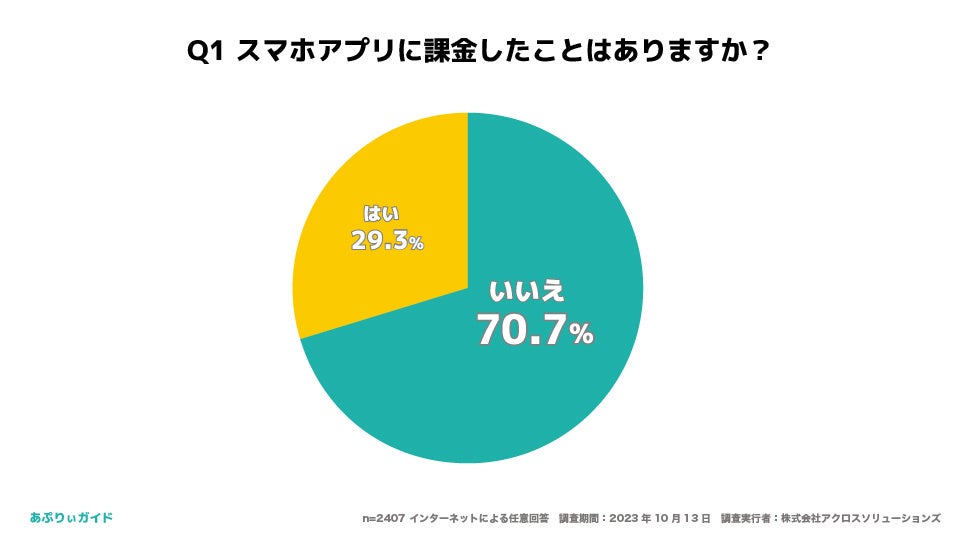 「はい」と答えた人は29.5%と、スマホアプリに課金したことがある人は全体の約3割という結果になりました。