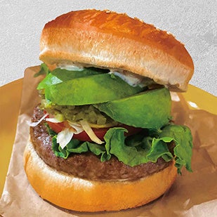 アボカドとパティを堪能する食べ応えのあるバーガー。