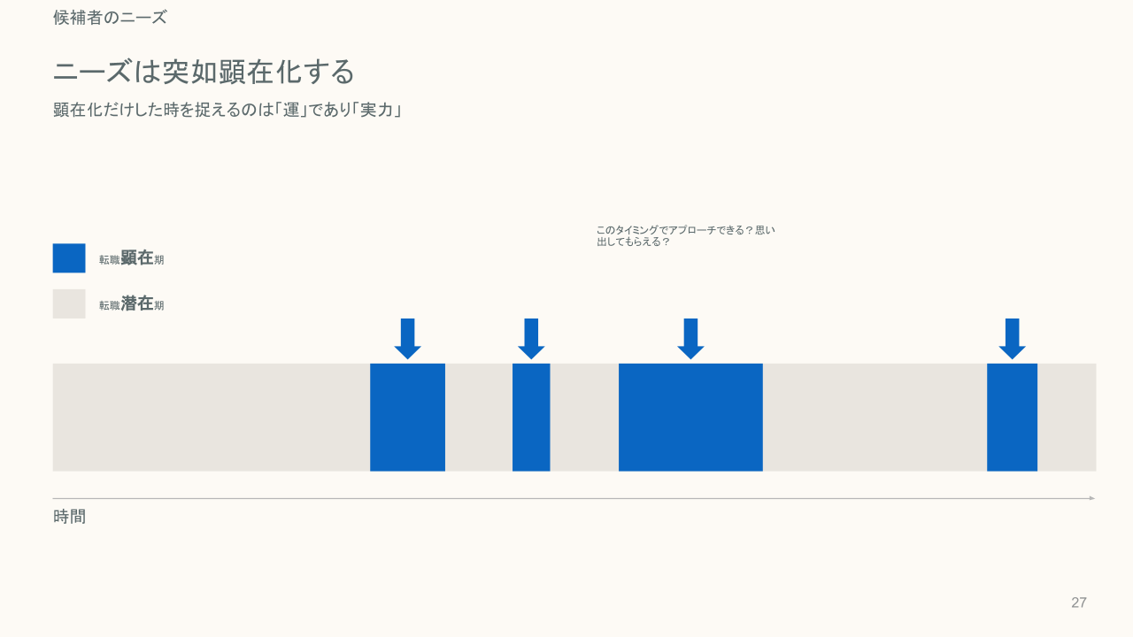重要なのは候補者が転職を考えるタイミングで、選択肢として思い出してもらえるかどうか。