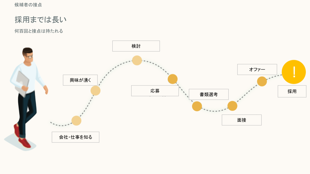 SNSやメディアでの情報発信も含めれば、候補者が自社と接触する回数は何十回、何百回にものぼります。