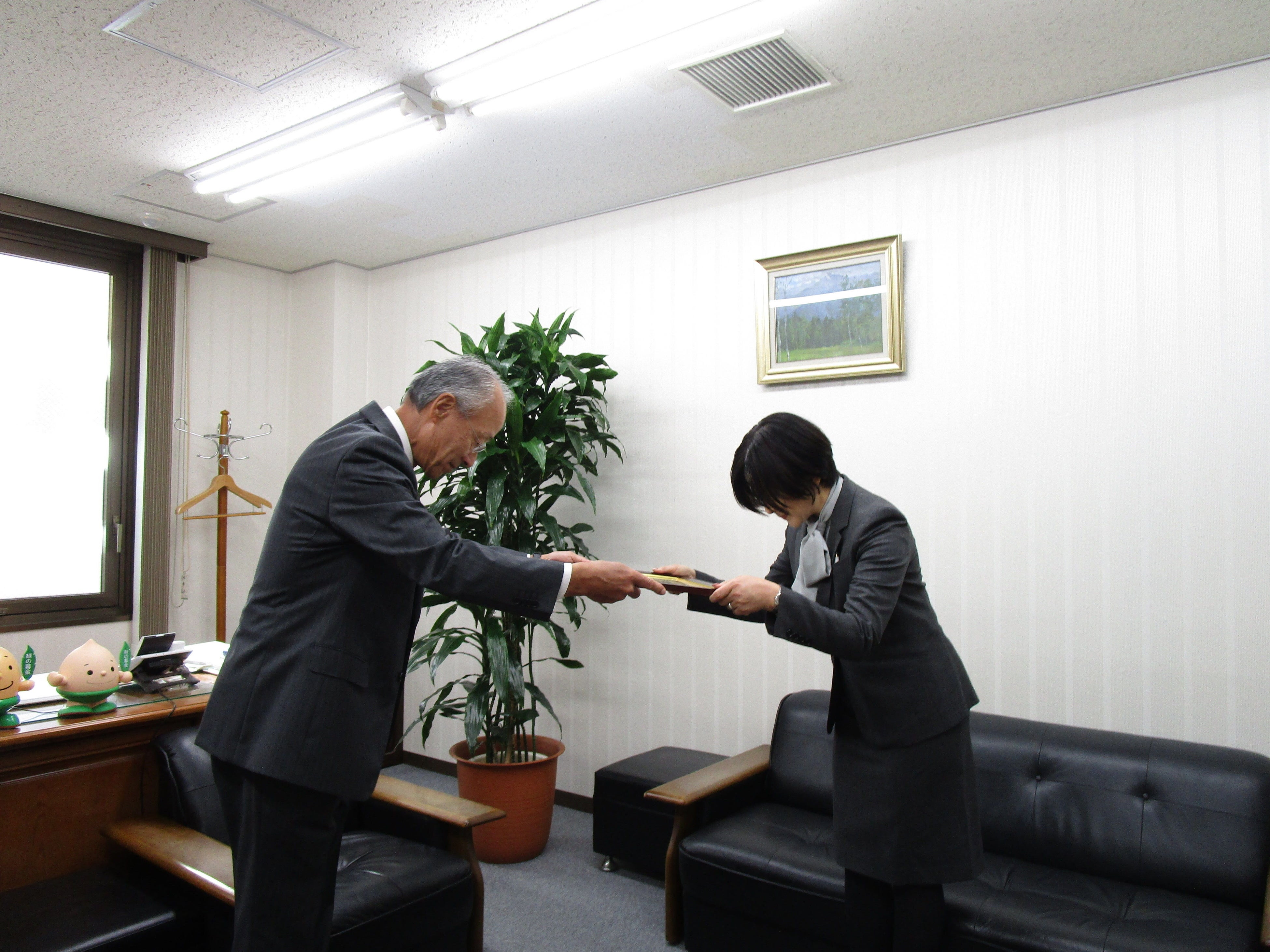 また、国土緑化推進機構はフジ建設株式会社の寄付に対し国土緑化推進機構理事長感謝状の授与を決定し、10月23日(月)/11時より同機構オフィス内にある理事長室にて贈呈式が開催されました。