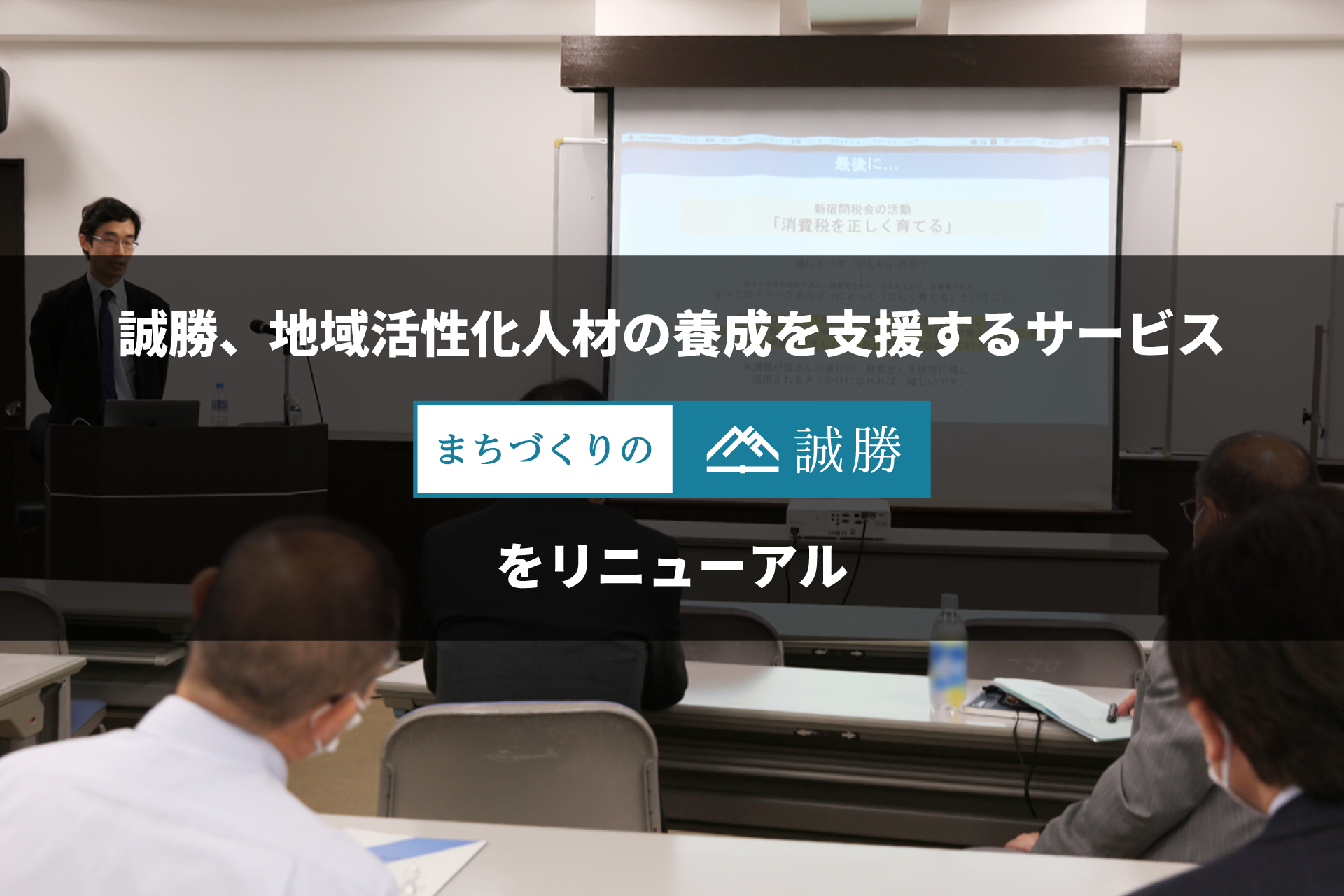 「まちづくりの誠勝」は、主に大学・短期大学などの教育機関を対象とした課題解決型プロジェクト学習(PBL型)と、主に企業内担当者を対象とした講師派遣型研修の2つのコースからなる人材養成支援サービスです。