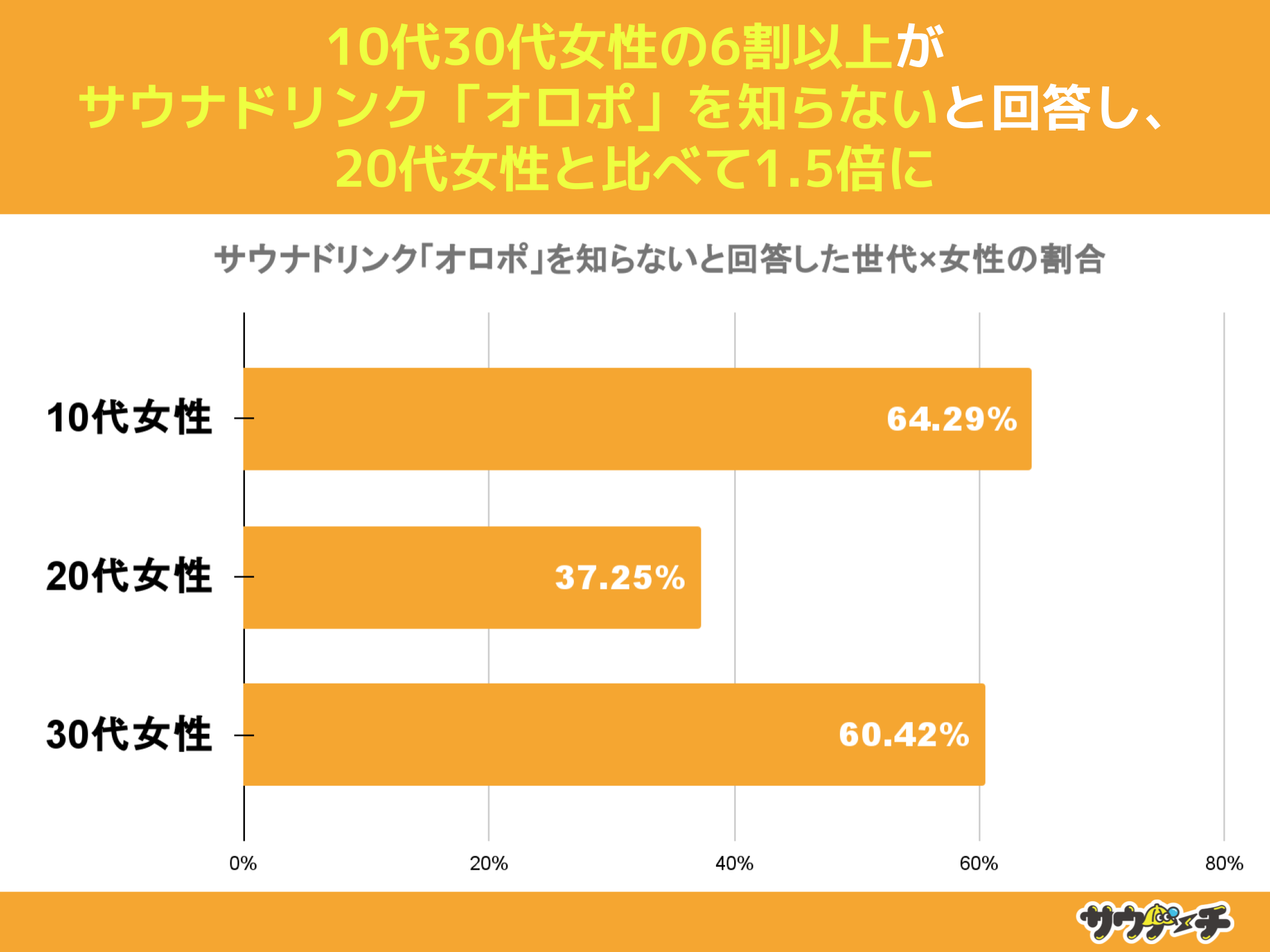 【10代30代女性の6割以上がサウナドリンク「オロポ」を知らないと回答し、20代女性と比べて1.5倍に】