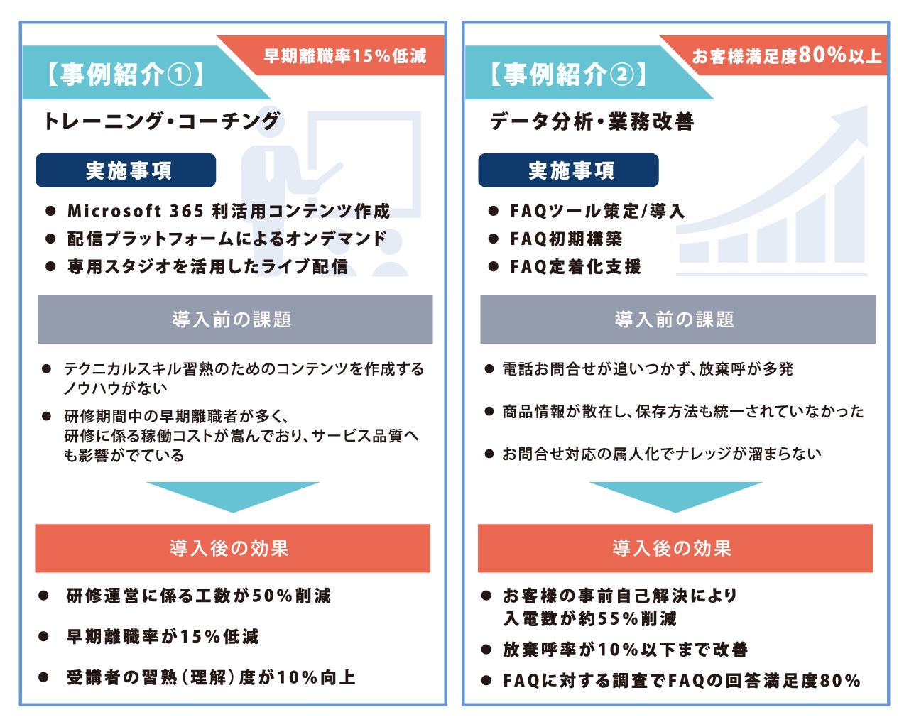 本サービスは、約25年の実績で培った当社独自のトレーニングプログラムやナレッジを活用して、コールセンター立ち上げや業務改善をご支援し、顧客満足度向上を目指します。