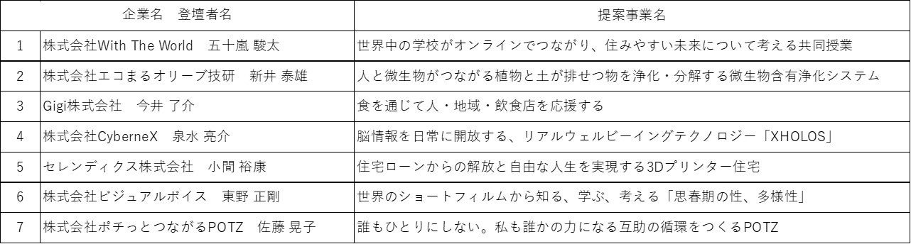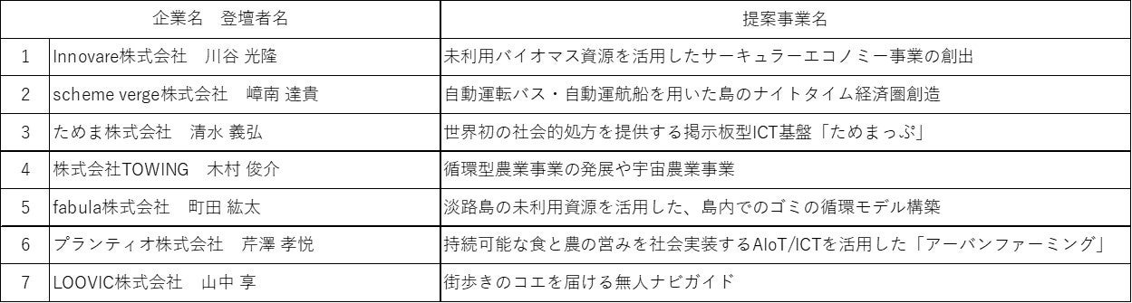 この度、21名のファイナリストが決定し、同日の公開プレゼンテーションにより最優秀賞・優秀賞を決定いたします。受賞者には、パソナグループが淡路島で展開する事業との連携や、実証実験などを通した事業化支援を行う「インキュベーションプログラム」の提供などを行ってまいります。