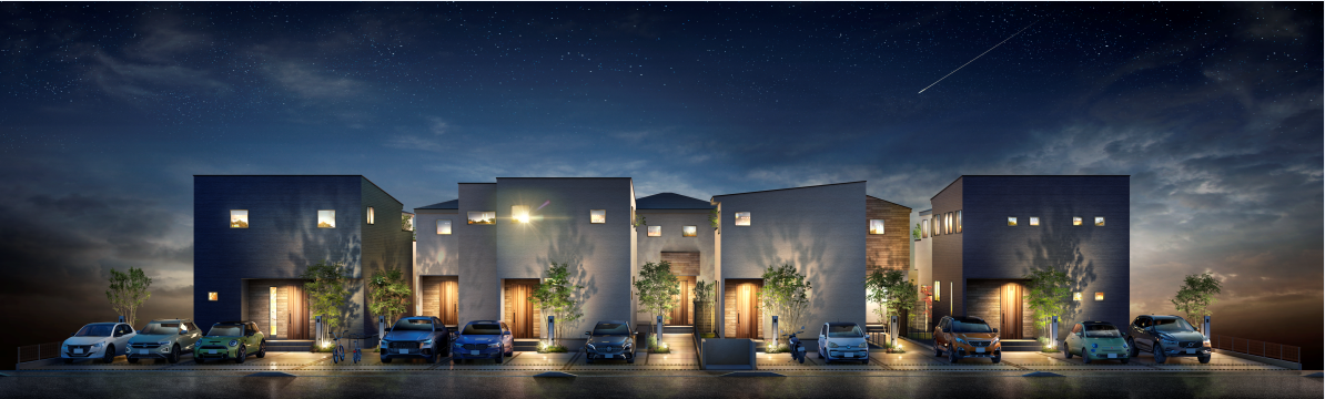 夜間の景色を彩る「灯かりのいえなみ協定®」エコにも配慮したLEDの灯かりが夜間になると自動点灯。美しさを演出するとともに近隣の防犯にも貢献、安心を与えてくれます。