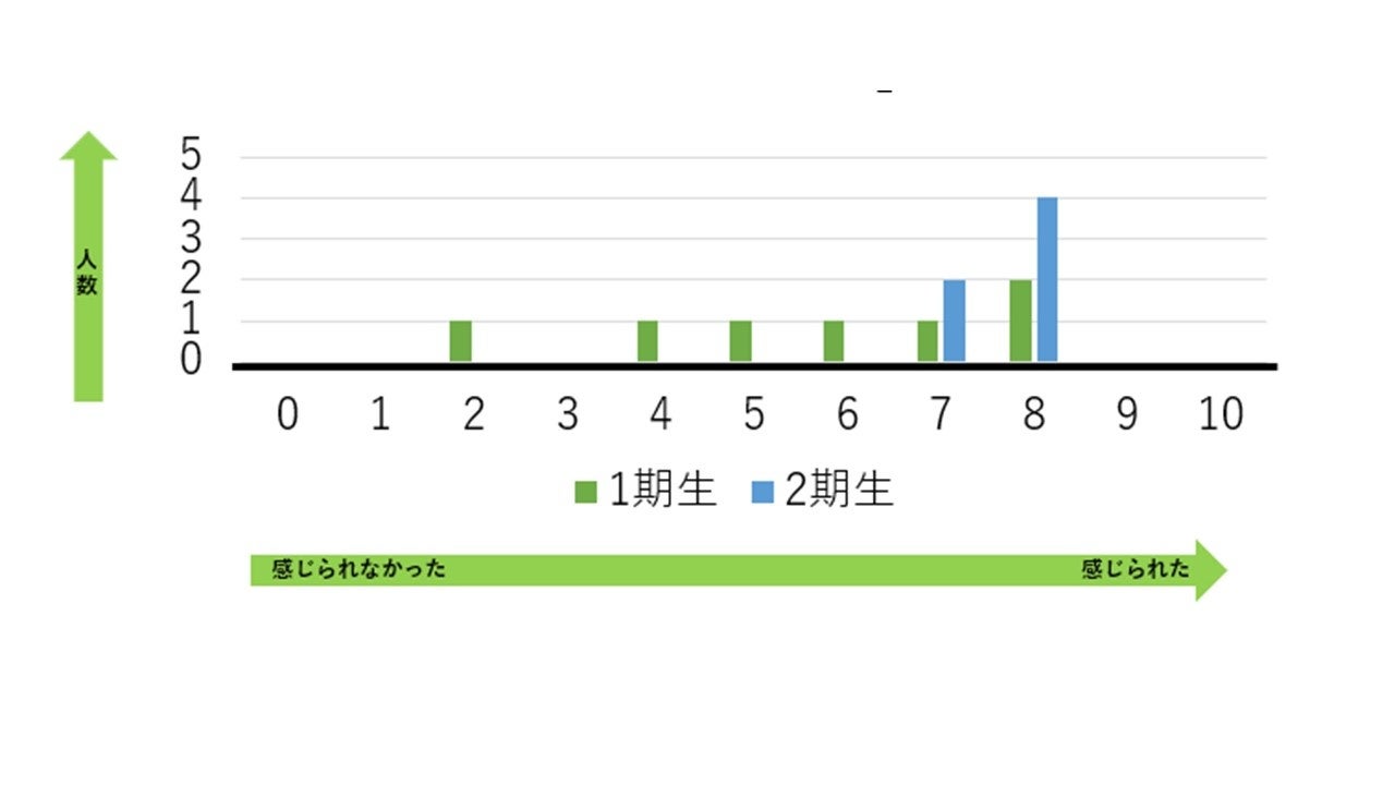 1期生2期生合計9名(13名中69.2%)が10点満点中7点以上の「変化を感じられた」と回答。
