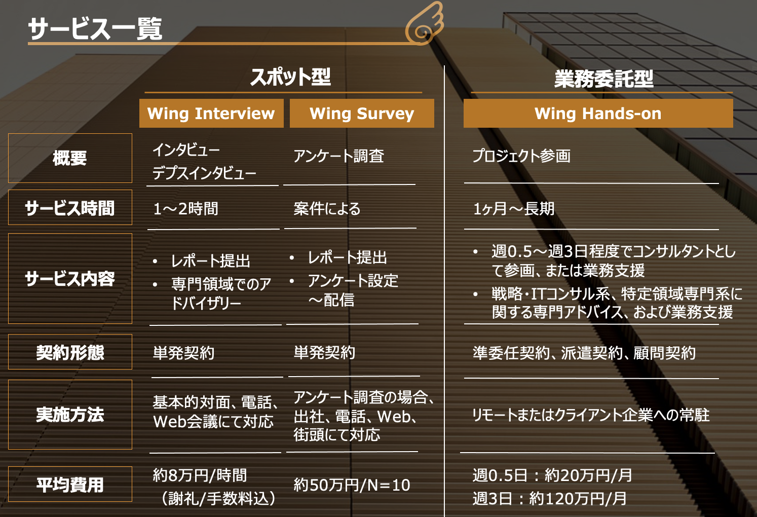 ・運営会社がコンサルティングファームという強みを活かしたアンケート調査やインタビューの設問設定業務代行