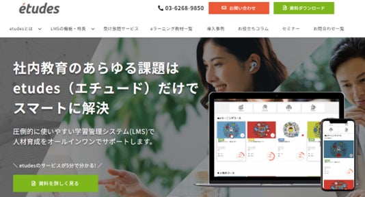 「etudes」 は、受講者・管理者の使いやすさに徹底的にこだわった、企業向けのクラウド型 e ラーニングシステムです。すぐれた UI/UX により受講者は自分に必要な研修コースに最短経路でたどり着くことができ、秒単位の緻密な学習履歴を記録できる管理画面は、企業の人材育成担当者の育成戦略立案をサポートします。