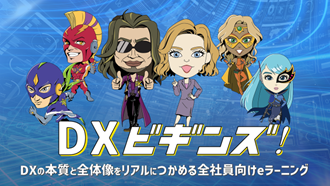 DXの本質と全体像をリアルにつかめる全社員向けeラーニングです。まだDXについてあまり理解していない社員の学習への動機づけに活用いただけます。ポップで印象的なアニメーションを用い、デジタルに苦手意識のある社員の取組みやすいのが特徴です。インプットだけでなく、各章で「自分の立場に置き換えるなら」というアンケートに回答してもらうことで、理解度促進と行動変容を促す設計となっています。