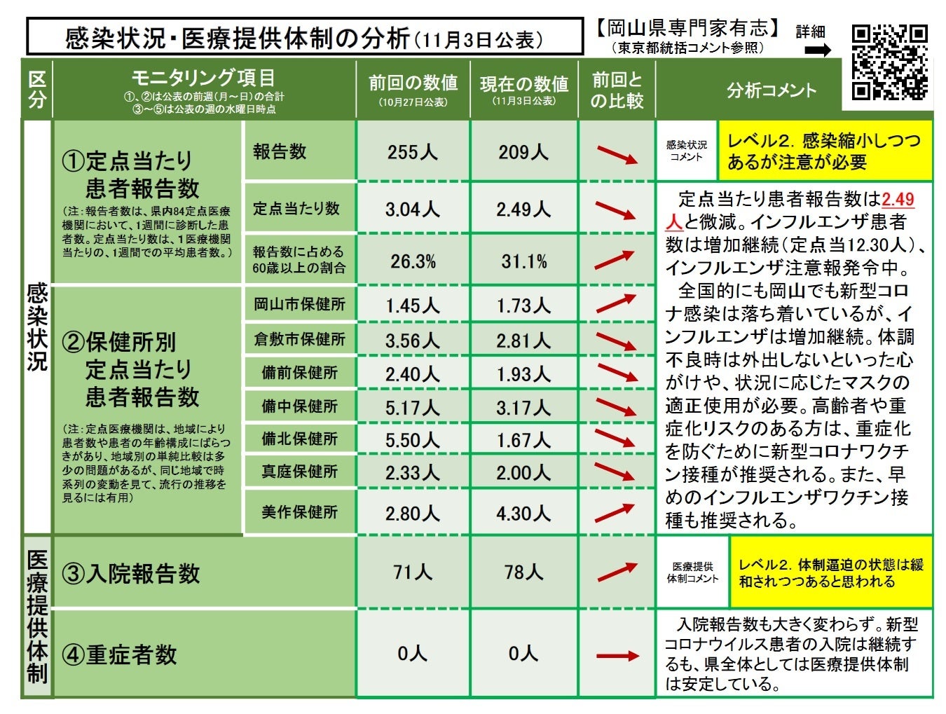 〔参考:前回 10月 27日(金)時点…レベル2.感染縮小しつつあるが注意が必要〕