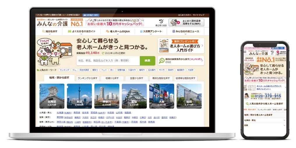 ※主要な老人ホーム検索サイトを対象に掲載施設数の調査を行った結果、みんなの介護がNo.1を獲得しました。