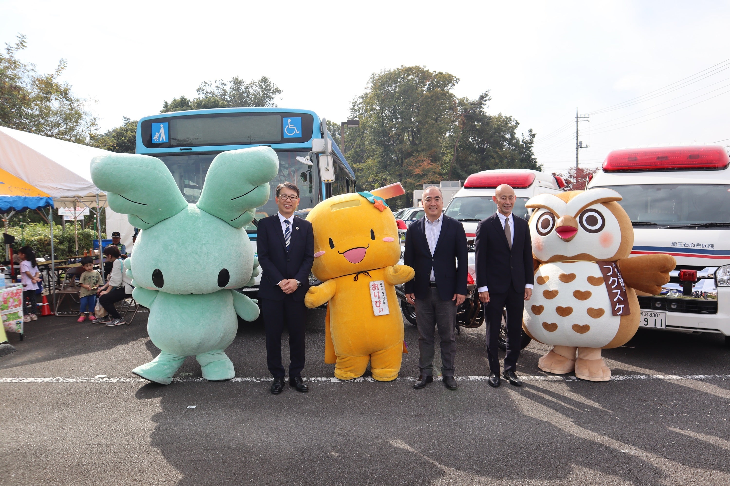 イベント初日の11月4日には、小谷野剛・狭山市長が来場者へご挨拶され、埼玉石心会病院、西武バスといった地域企業と取り組みを行うにあたり、「市民のために『さやまなびウォーク』のような取り組みを、地域のインフラ企業と連携できることは大変意義があること。市民の皆さんとも一緒になっていい街づくりをしていきたい。」とお話されました。その後、石井耕士・埼玉石心会病院長が地域の救急医療や、防災医療を支える病院としての取り組みを、塚田正敏・西武バス社長が地域の交通を支える企業としての取り組みをお話されました。