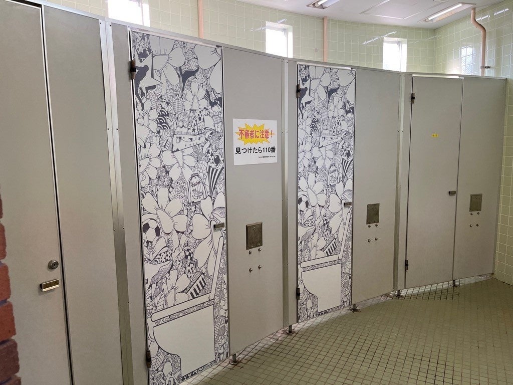トイレの内装にラッピングをすることで、トイレ内を明るく演出します。