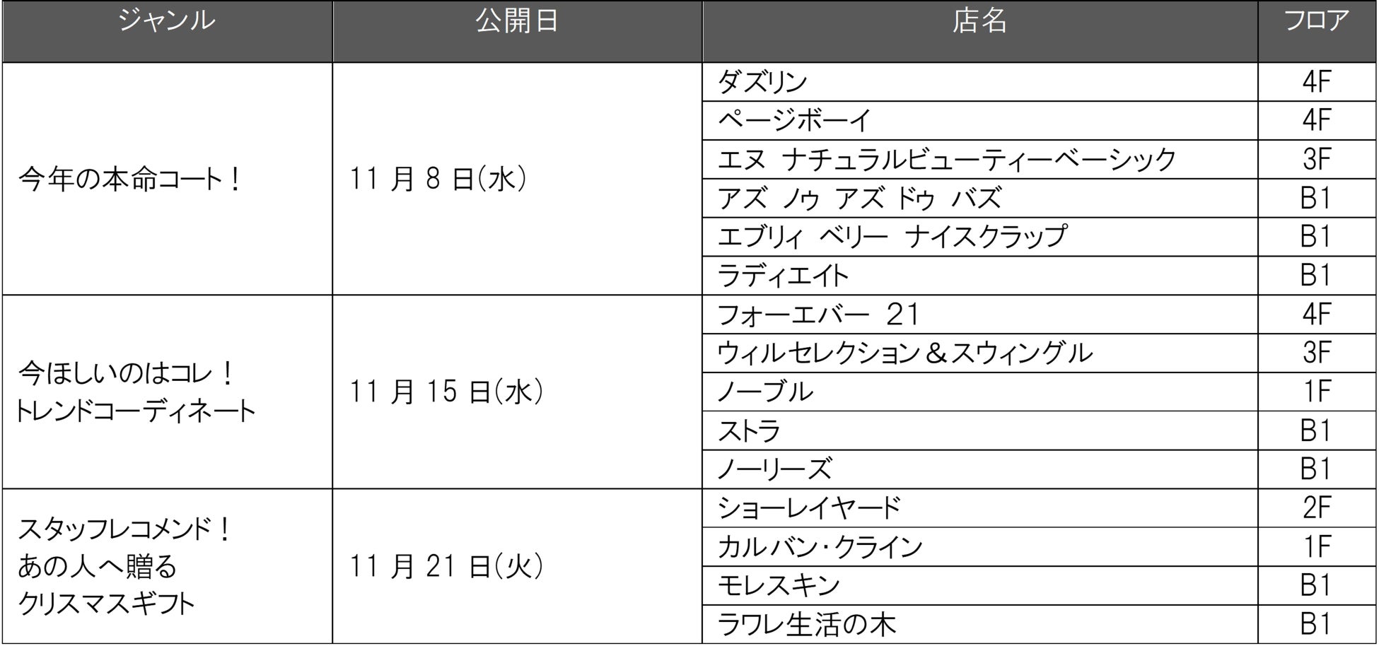 11月15日(水)~  今ほしいのはコレ!トレンドコーディネート(5店舗ご紹介)