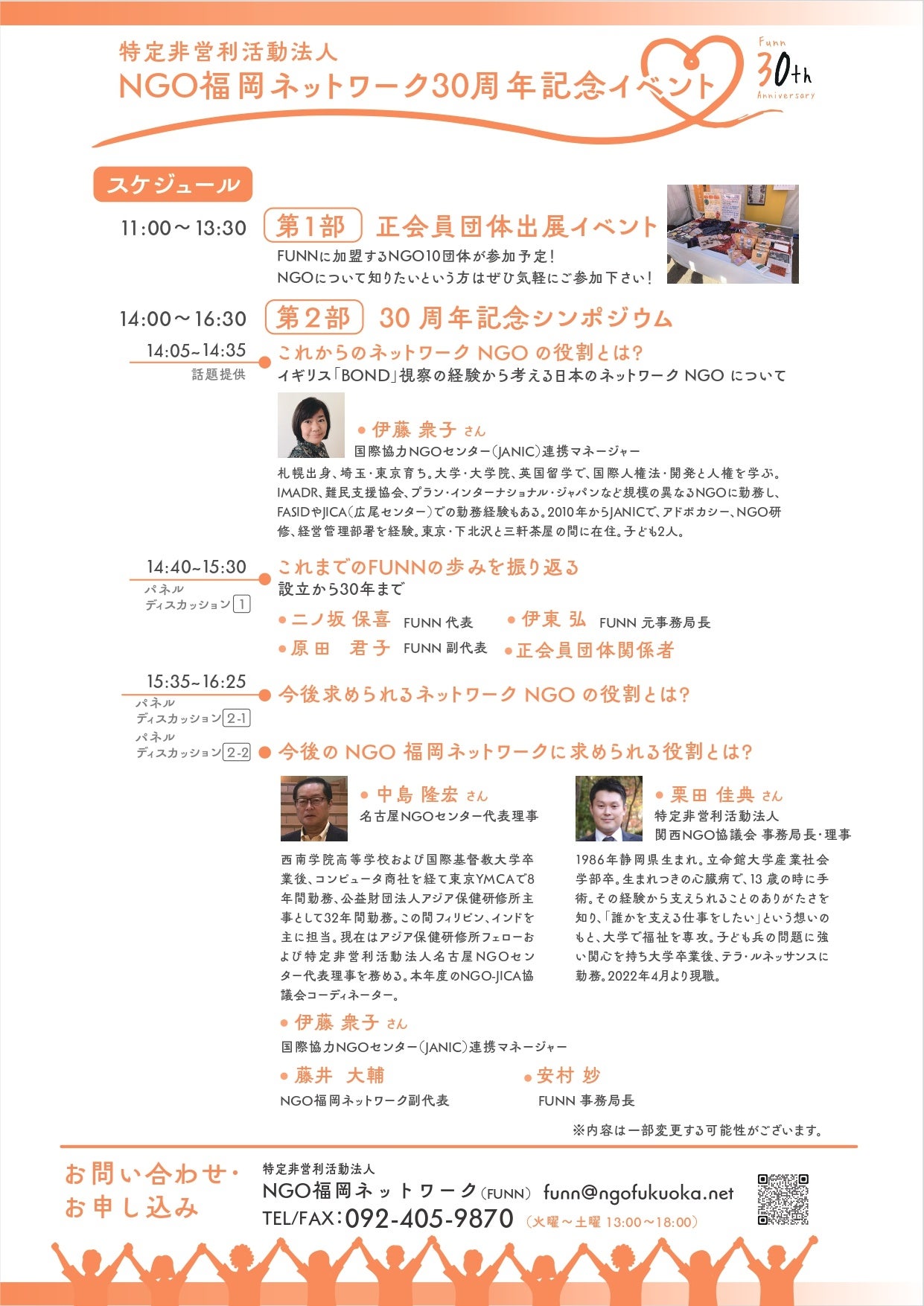 ・名称:NGO福岡ネットワーク30周年記念イベント「つながることでみえること」
