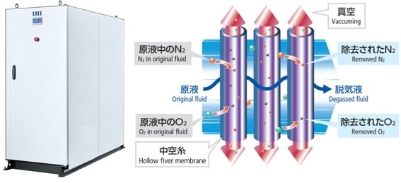 膜式脱酸素装置とは,液体は透過せず,気体だけ透過する膜の片側に通水し,反対側を真空にすることにより,水中の溶存ガス(酸素含む)を除去する装置です。