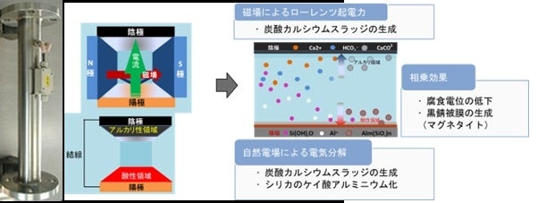 ・電場・磁場処理装置(スケールキラー)(左)と概念図(右)