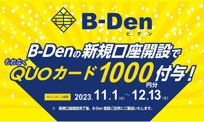 そこで、B-Denでは下記のとおり新規口座開設キャンペーンを実施いたします。