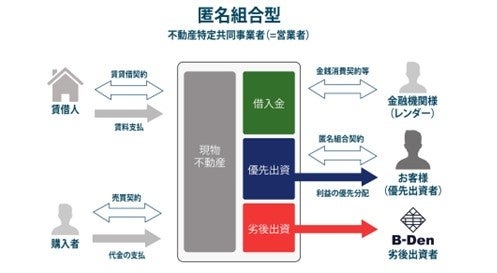 B-Denはお金を運用したい個人投資家の資金を集めて、物件の収益性を期待し運用するサービスです。運用中物件の賃料収入や売却益が配当原資となるため、株式やFXのように日々値動きがある金融商品とは異なり、管理の手間がなく普段の生活スタイルを崩さずにご自身のペースで資産運用を始めることができます。