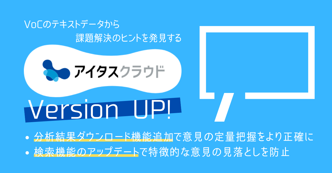 ご利用いただいているユーザー企業の皆様から多く頂戴したご意見を踏まえたアップ―デートとなります。今後も、「声が届く世の中を創る」の実現に向け、「アイタスクラウド」の機能強化を継続して参ります。