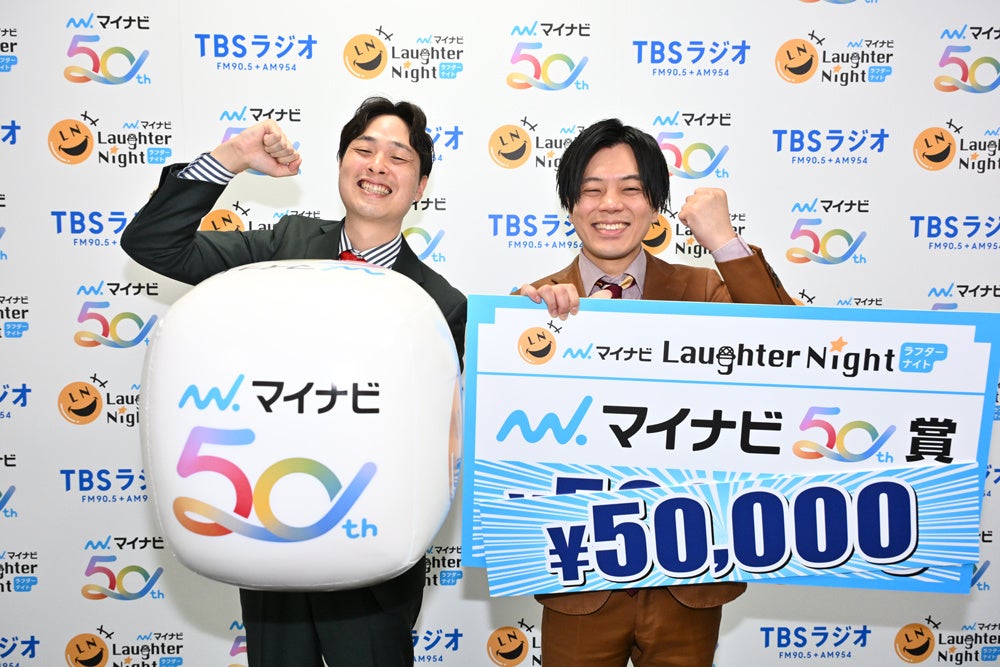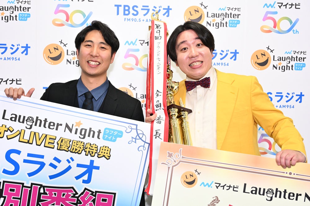 TBSラジオ『マイナビ Laughter Night』の第9回チャンピオンLIVEが、本日11月11日(土)に東京・一ツ橋ホールにて行われ、南海キャンディーズ・山里亮太がMCを務める中、12組がネタを披露しました。客席投票と、オンライン配信での投票の結果、金魚番長が優勝し、TBSラジオの冠特番出演権に加えて、株式会社マイナビの創業50周年を記念して例年より「50万円」増額となった賞金150万円を獲得しました。