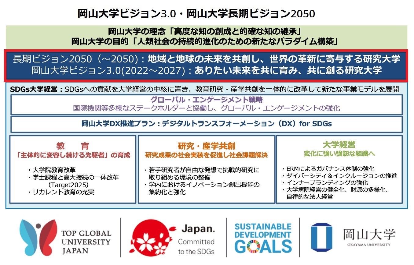 ・【岡山大学】岡山大学長期ビジョン2050をより確実に実現させ、社会変革を起こす”力”がある研究大学:岡山大学を目指して「岡山大学研究ポリシー」を改正