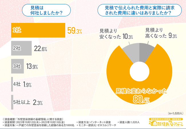 また、およそ1割の方が、見積もりより実際の費用が高くなったと回答し、修繕の必要や塗料の変更など、予想外の出費があり得ることも明らかになっています。