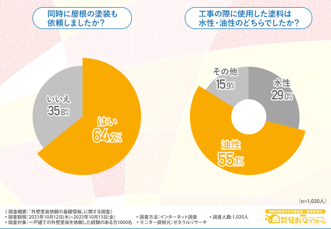 「同時に屋根の塗装も依頼しましたか」と質問したところ、およそ65%の方が『はい(64.2%)』と回答しました。