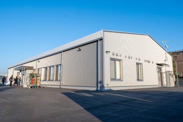 今回完工した交流棟は、当社独自の膜構造を使って短工期化・低コスト化を実現する膜構造建築「フレックスハウス」です。長年の膜構造建築の技術とノウハウをもとに、自社工場で部材を生産することで高品質かつ工期短縮を実現しており、本施設は着工からわずか6ヵ月で完工しました。膜構造で作られた施設は、軽量で使用する鉄骨量も少なくできるため、輸送による環境負荷を大きく低減、金属部材やコンクリートなどを多く使用する一般的な建築物と比較し、環境負荷の削減に寄与しています。