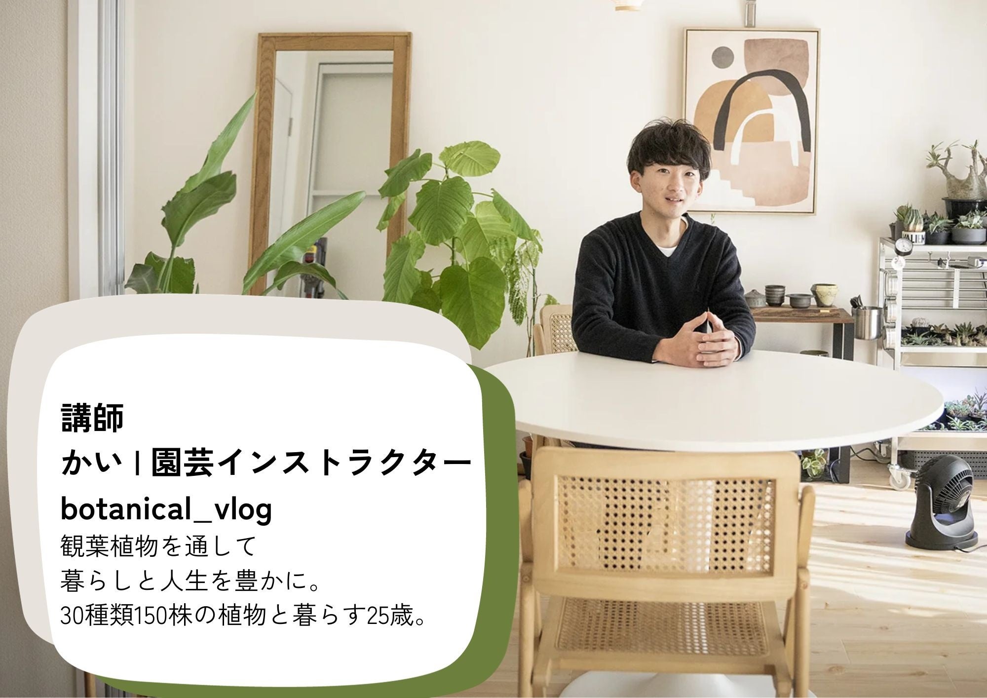 インスタグラム等のSNSで植物に関する発信をされている園芸インストラクターのかい氏を講師にお招きして、「植物と暮らす」ことをもっと身近に感じていただくことを目的としたセミナーです。